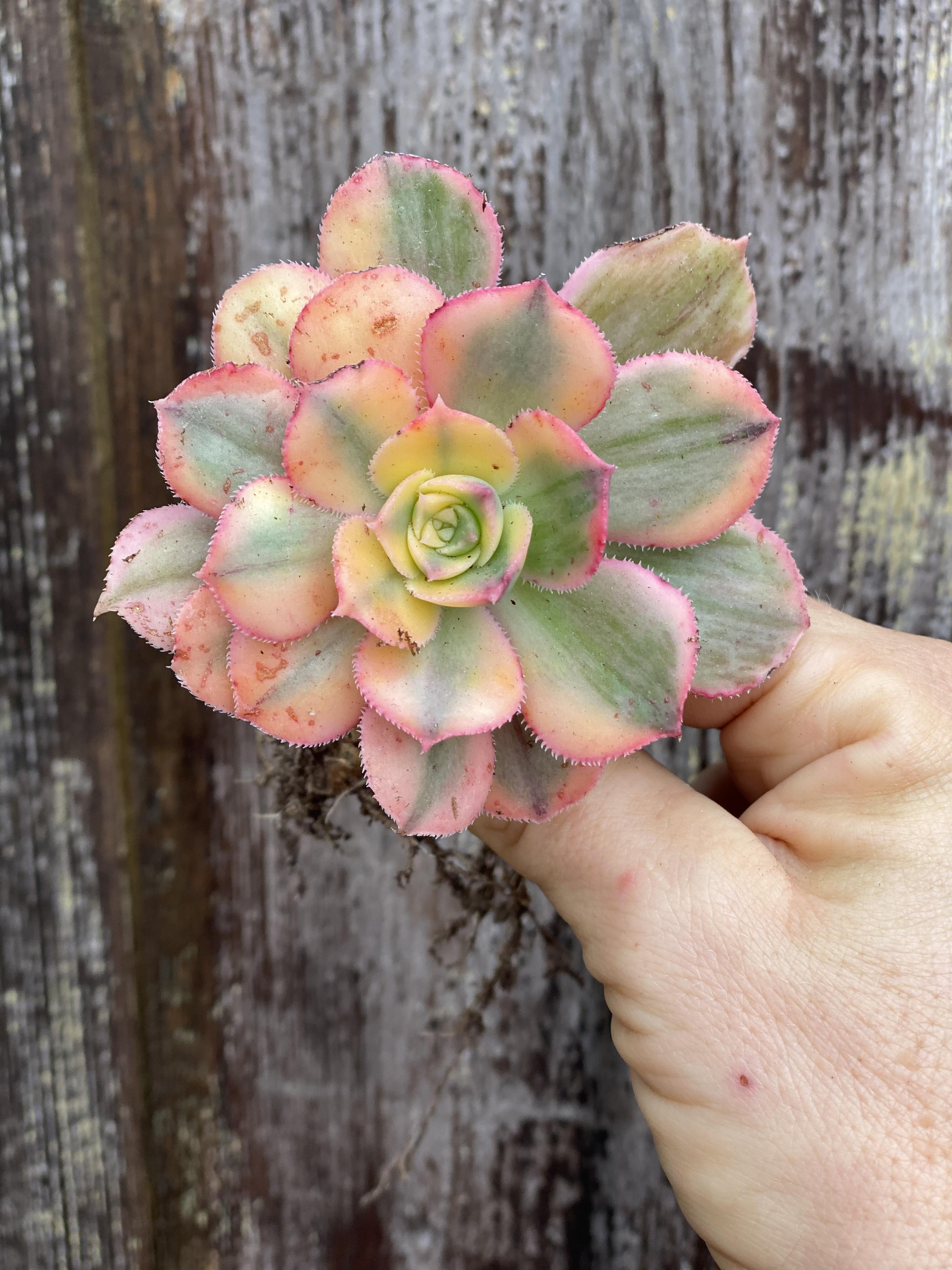 Aeonium 'sunburst' (copper pinwheel) is an ornamental, branching succulent plant. They need bright sunlight, great drainage, and infrequent water to prevent rot. The aeonium 'sunburst' is from the crassulaceae family growing up to 18 tall these plants stand on a bare creamy white trunk with large rosettes of variegated . Then cut it from the main or mother plant with the help of sharp knife . Large rosettes of fleshy, variegated leaves on thick, bare stems. Aeonium 'sunburst' is a branching succulent with large rosettes of fleshy variegated leaves that stand on long bare stems. This aeonium has beautiful variegation in the leaves and pink tinges to the leaf margins in high light levels. It gets its name from its rosette leaves that resemble the sun with its rays. Simply plant it in a pot and leave at bright location without direct sunlight for a few days. Cristatum is a beautiful succulent with crested stems and medium rosettes surrounded by smaller rosettes of leaves variegated in . Aeonium sunburst is a succulent that is native to the canary islands. It is thought to be a . ***the plant may appear dry or stressed when you receive it.